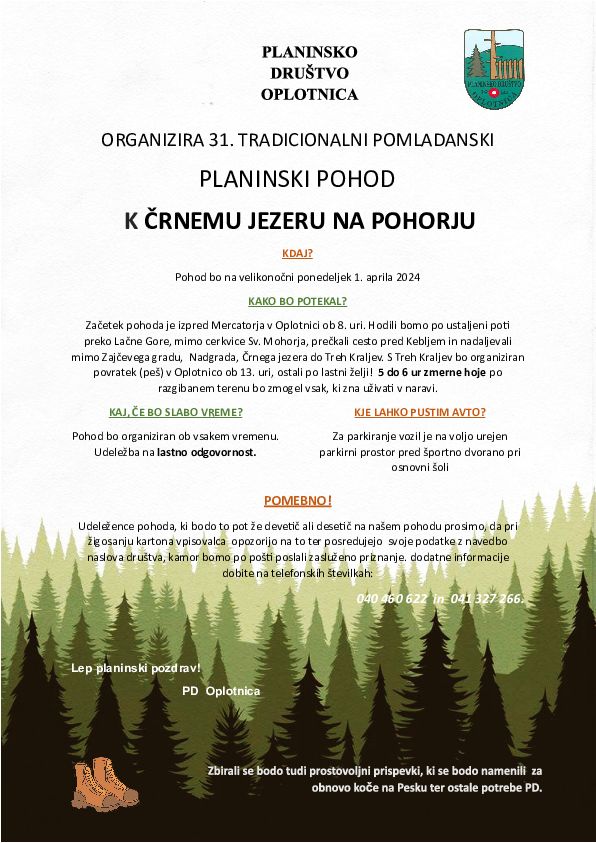 Organizator: PLANINSKO DRUŠTVO OPLOTNICA