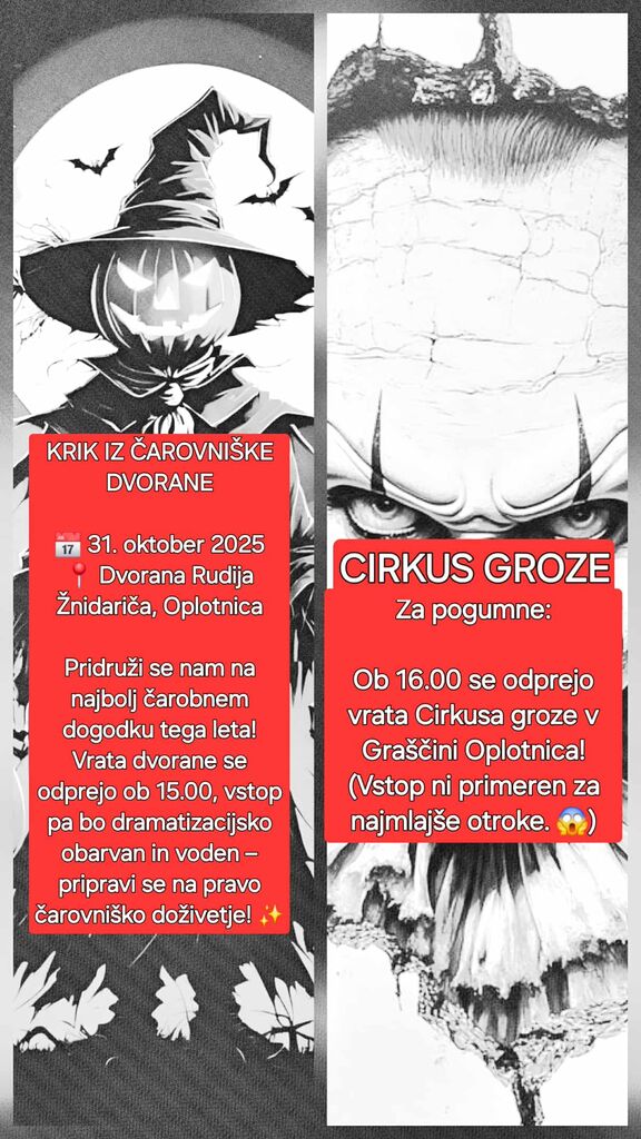 Za pogumne (10+) se odprejo vrata Cirkusa groze! Tematsko preurejena graščina ponuja vodeno, napeto in strašljivo doživetje, polno adrenalina in presenečenj.