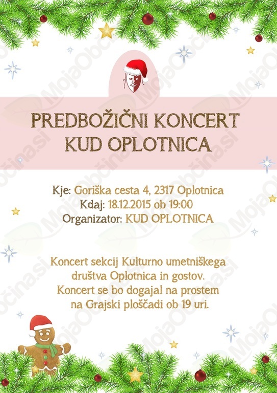 Koncert sekcij Kulturno umetniškega društva Oplotnica in gostov. Koncert se bo dogajal na prostem na Grajski ploščadi ob 19 uri.