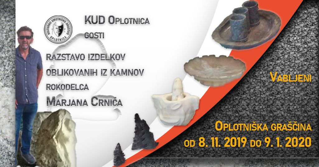 Kot gost Kulturno umetniškega društva Oplotnica, v oplotniški graščini od petka razstavlja tudi domačin Marjan Crnič, rokodelec in ljubitelj kamna. V vitrino pred kapelico je postavil delček svoje bogate zbirke unikatnih izdelkov, oblikovanih iz kamna. Ogledati si je mogoče jaslice Oplotnica, sovico, pokal, pladenj, krožnik, terilnik … Razstavljene izdelke je oblikoval iz različnih materialov: pohorski granit, pohorski marmor, pohorski skrilj, apnenec s Konjiške gore in primorski apnenec.