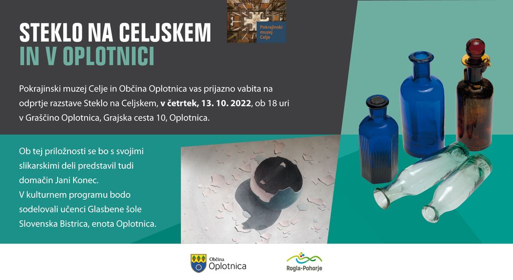Pokrajinski muzej Celje in Občina Oplotnica Vas prijazno vabita na odprtje razstave Steklo na Celjskem in Oplotnici.