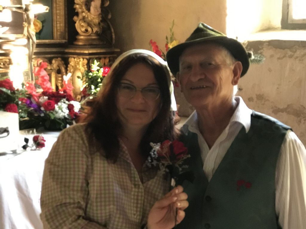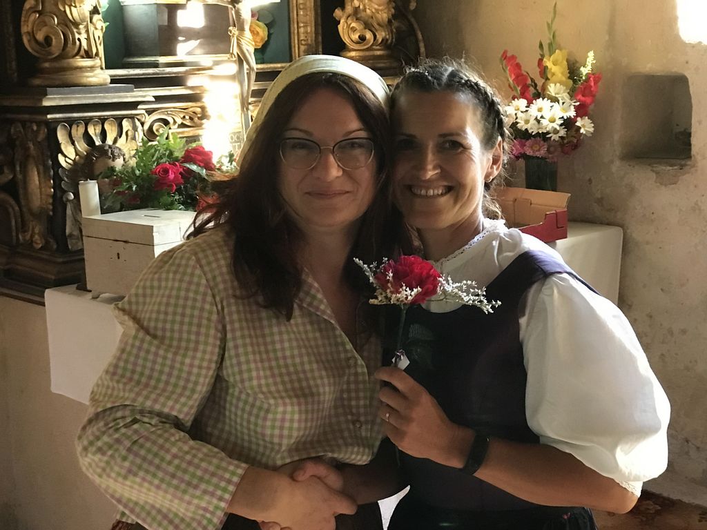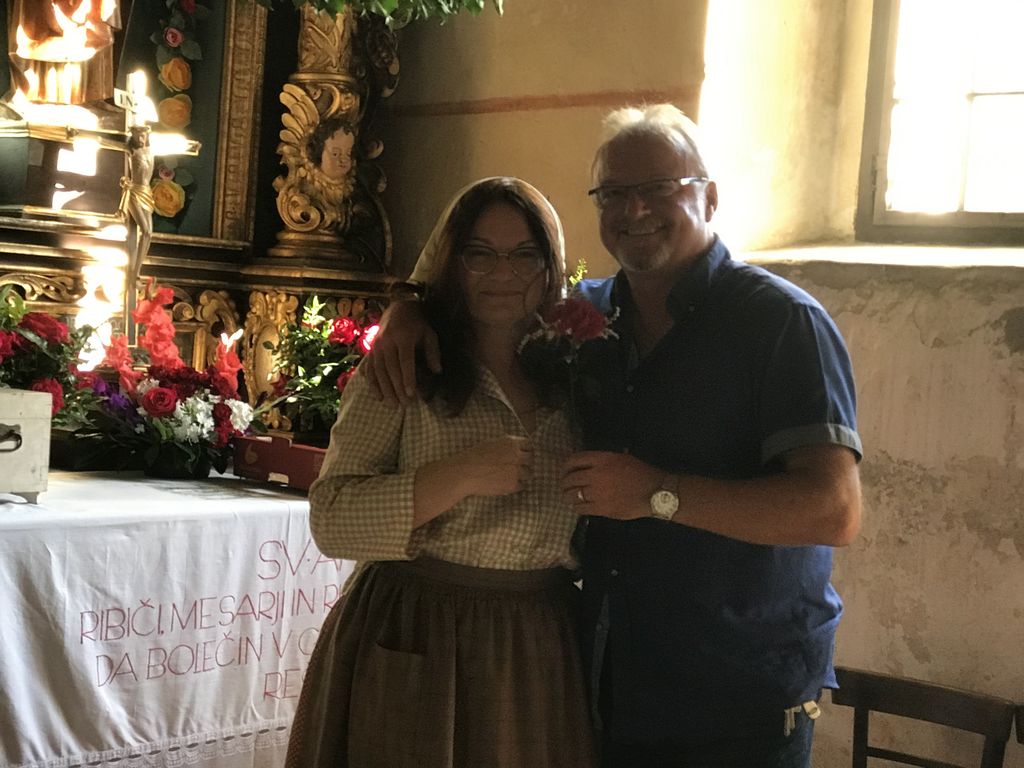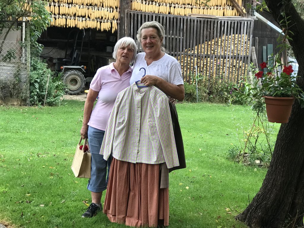 Štefka Žnidarič, članica Sekcije za ohranjanje kulturne dediščine, je hitro našla rešitev za mojo idejo, biti oblečena v nekaj starega, v stilu prireditve. Oglasili sva se pri Olgi Tomažič, ki je rade volje posodila Štajersko delovno nošo (originalne so uporabljali pred približno 100 leti). Na nastopih jo še vedno oblečejo članice Ložniških uferc.