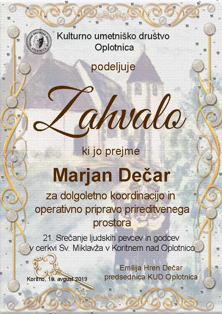 Na koncu želim v imenu Kulturno umetniškega društva Oplotnica in mojem imenu še enkrat izreči iskrena hvala vsem (tudi tisim, ki sem jim mogoče nehote izpustila) notranjim in zunanjim sodelavcem, ki ste po svojih najboljših močeh pripomogli, da je prireditev tako uspešno “spravljena pod streho”.
