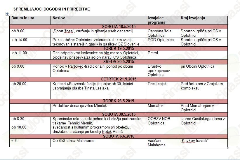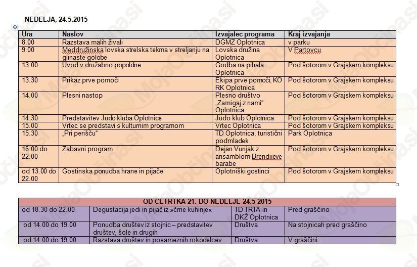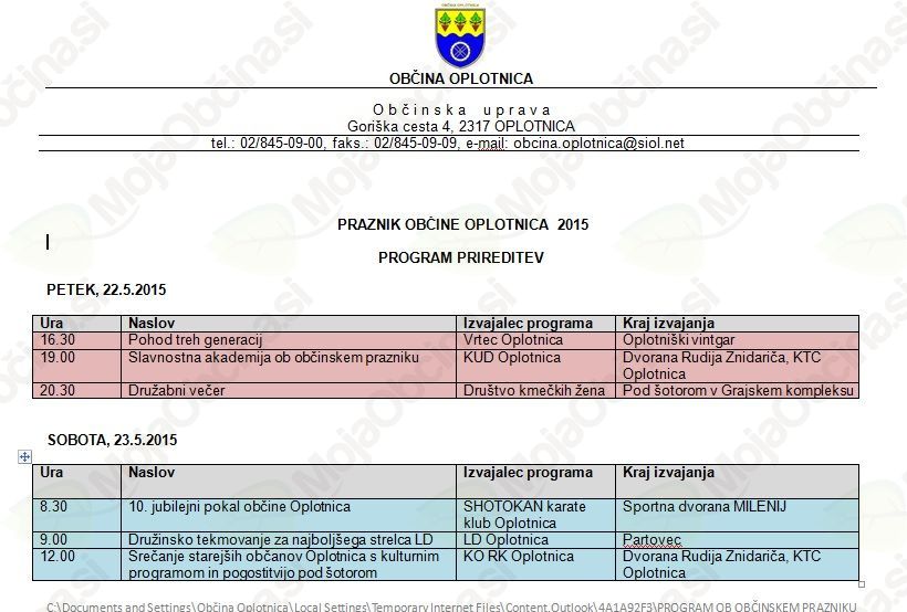 Program prireditev ob občinskem prazniku Občine Oplotnica - 2015
