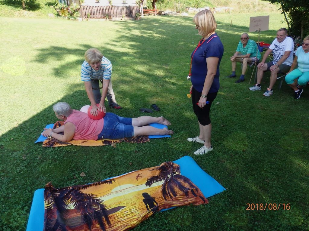 Po napornih vajah pa je sledilo še sproščanje v » masažnem salonu«. Maserka je demonstrirala masažo z žogo. Kar nekaj udeležencev je preskusilo blagodejnost te masaže na svojem telesu. Vsi pa so za svoje zdravje in počutje skrbeli od začetka do konca: Veliko so se smejali!