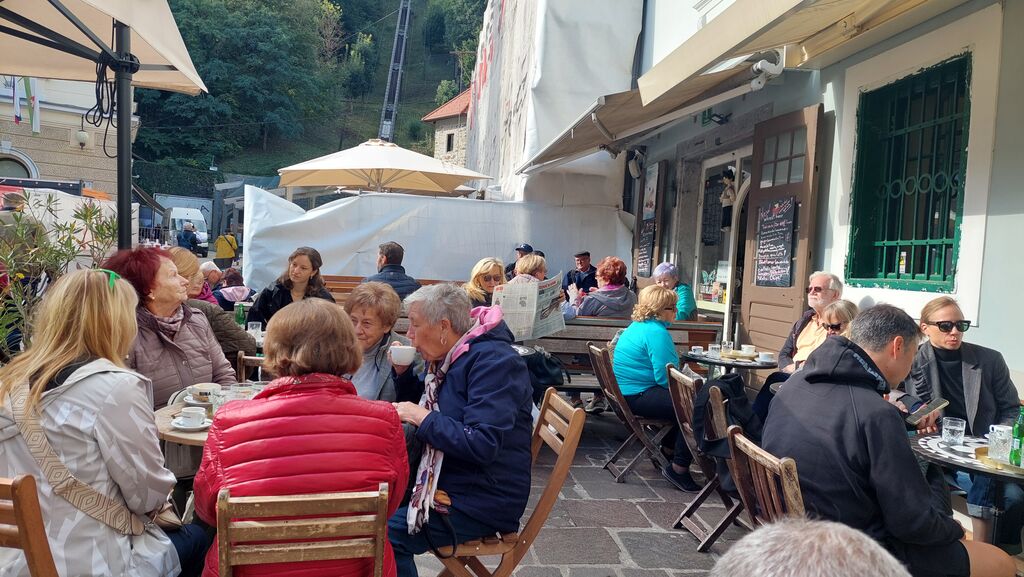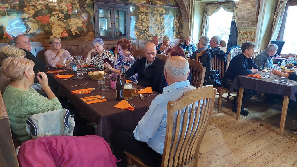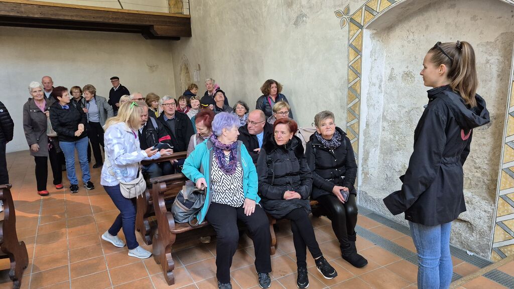 V zgodnjem jutru so se upokojenci odpravili z vlakom v Ljubljano. V mestu so se najprej ustavili na obvezni jutranji kavici pod gradom. Nato so se s panoramsko tirno vzpenjačo odpeljali na Ljubljanski grad. Namesto običajnega ogleda so na doživljajskem vodenem ogledu ČASOVNI STROJ obiskali šest prelomnih obdobij, ki so zaznamovala zgodovino Ljubljanskega gradu in razvoj našega glavnega mesta Ljubljana.