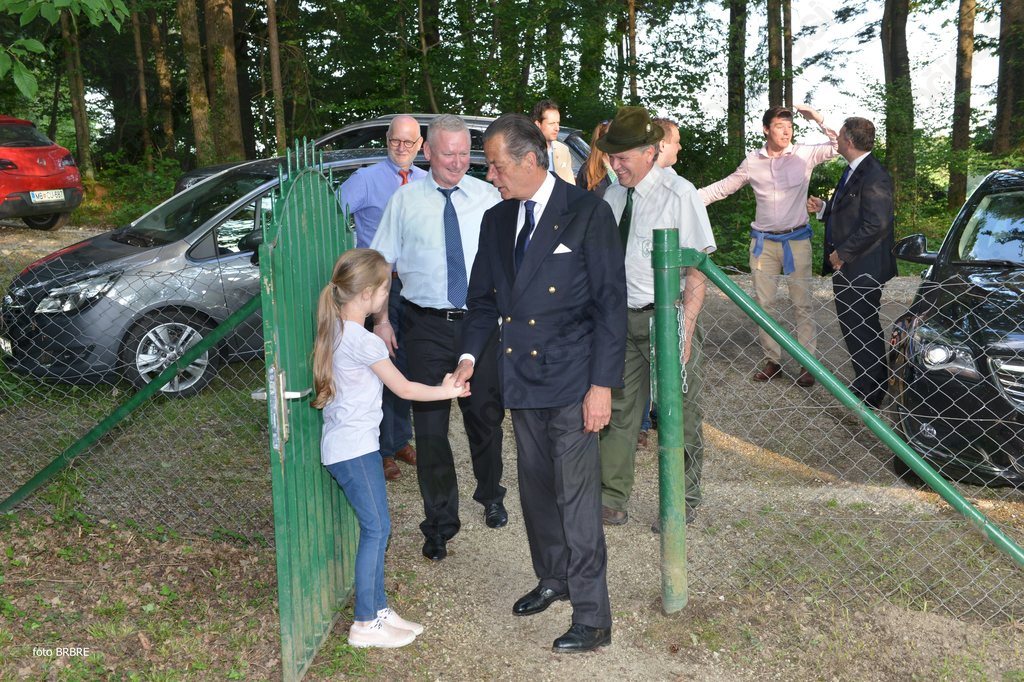 Ob ogledu prostorov glasbene šole smo srečali učenko, ki je na željo kneza zaigrala eno skladbo. Ob zaključku ogleda graščine, je župan knezu izročil darilo, ob sliki Partovca tudi košaro oplotniških dobrot. Delegacija se je nato odpravila proti Partovcu, kjer so nas pričakali člani Lovske družine Oplotnica. Najprej si je knez ogledal zunanjost koče in jezero. Tu se mu je takoj porodila zamisel za skupno fotografijo.