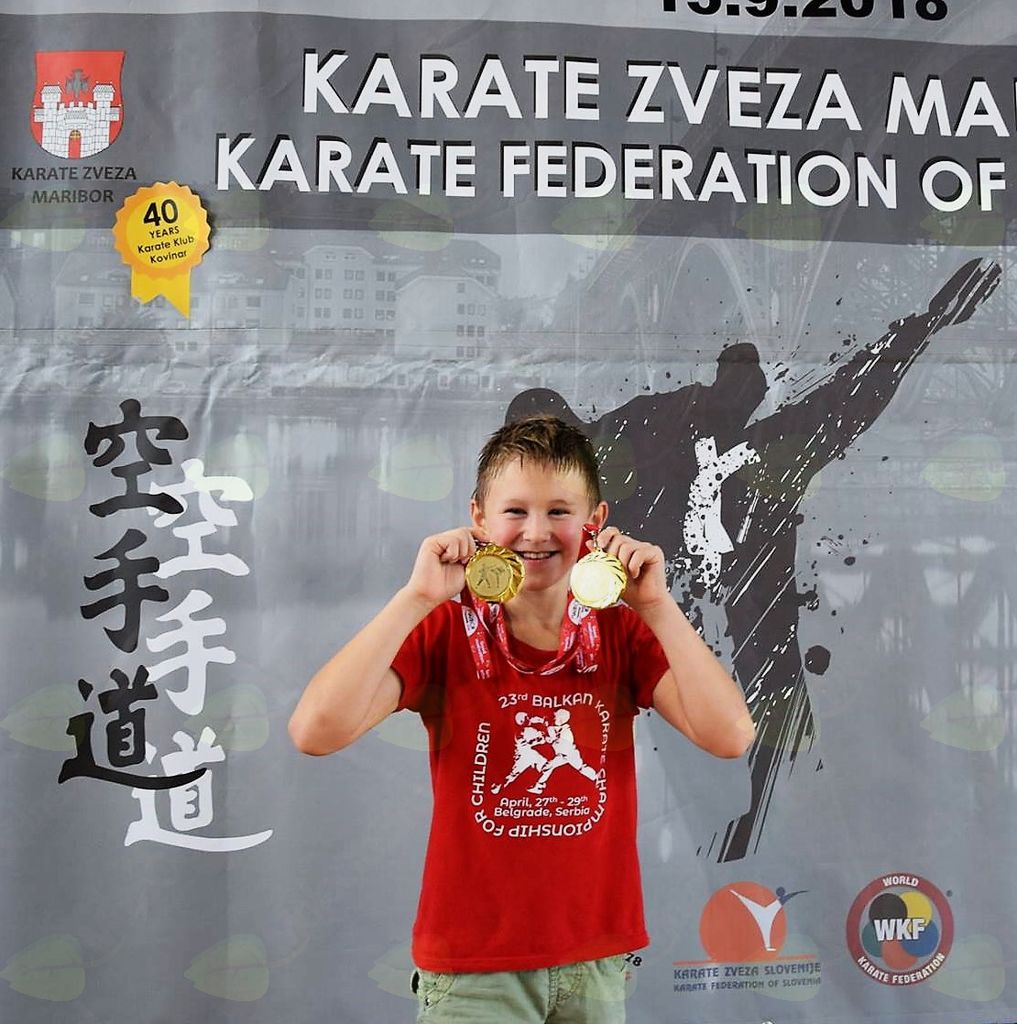 Hmelak Tibor je nastopal v dveh kategorijah (kumite malčki -30kg in kumite dečki -35kg) in dosegel izjemen rezultat saj je v obeh kategorija ostal s sedmimi zmagami neporažen in tako osvojil kar dve zlati medalji.