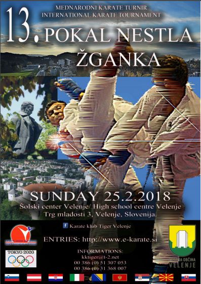 V nedeljo 25. 2. 2018 je v Velenju potekal 13. mednarodni karate pokal za Nestla Žganka. Udeležilo se ga je 448 tekmovalcev iz 44. klubov in 3.držav. Na turnirju smo osvojili prvo in dve drugi mesti. Neli Valenčak je v kategoriji športnih borb izgubila finalno borbo ter osvojila drugo mesto. Drugo mesto v katah je prav tako osvojil mlajši kadet Adrijan Stegne. Najžlahtnejše odličje je osvojila Neža Jerot, ki je v najmlajši kategoriji premagala vse nasprotnice.