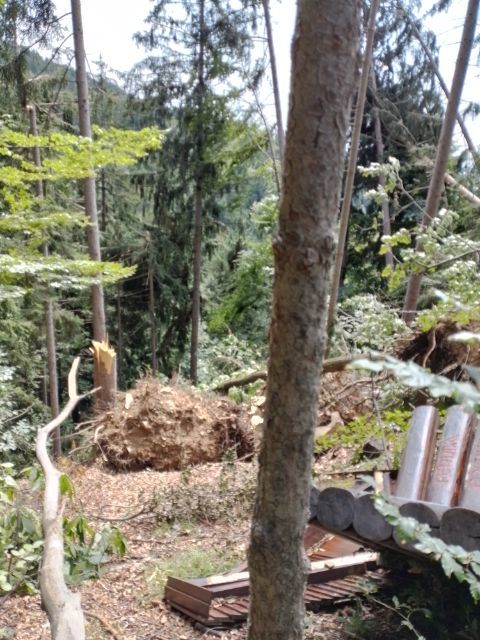 Prva huda ura v mesecu juliju, ko je veter pokazal svojo moč na našem terenu, ni prizanesla odprti knjigi, obeležju, postavljenem v spomin na delovanje partizanske tiskarne Tehnika Mernik. Sredi gozda, v Božjem, so popadala mogočna drevesa, izruvana iz razmočenih tal. Z lesenim spomenikom se je veter dobesedno poigral in njegove sestavne dele pometal naokoli. Obeležje je bilo postavljeno leta 1981, ko so združili moči predstavniki ČGP Večer in tedanji člani ZB Oplotnica. Tiskarna je delovala v neposredni bližini spomenika, v težko dostopni grapi ob potoku, pod vasjo Božje. Leta 2007 je bila obeležju dodana spominska plošča, ki je ujmo preživela.