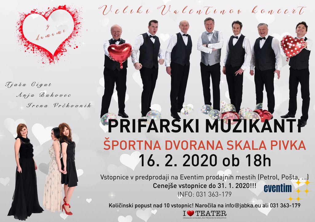 Veliki Valentinov koncert najlepših ljubezenskih pesmi, seveda po izboru Prifarcev. Tudi zato se bodo na koncertu slišale slovenske ljudske pesmi, popevke, ljudske pesmi drugih narodov in zimzelene svetovne uspešnice.