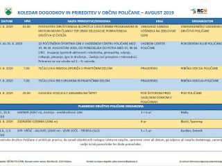 Občina Poljčane je objavila koledar dogodkov in obvestil za mesec avgust 2019.
