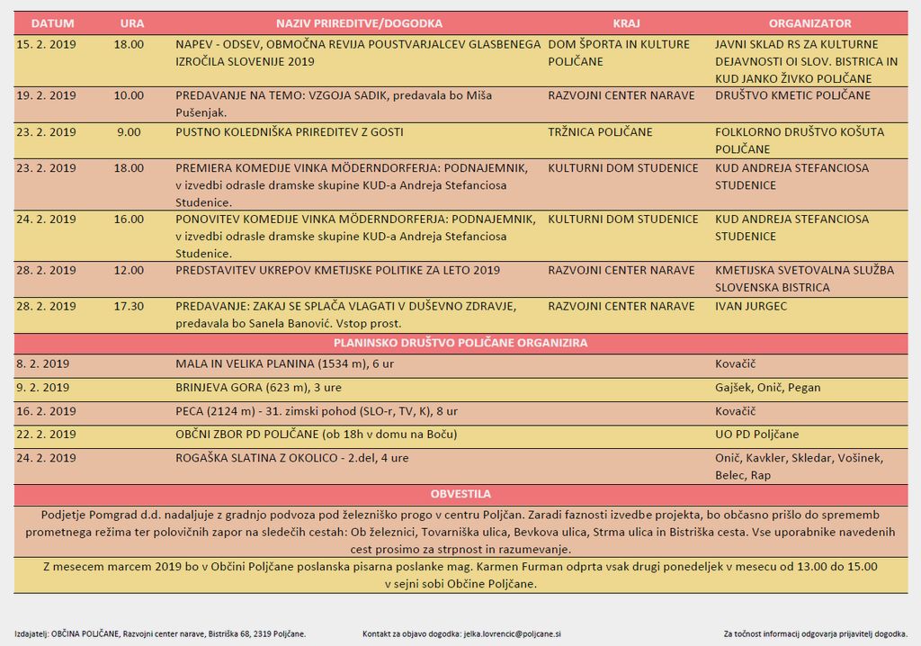 Koledar prireditev februar 2019