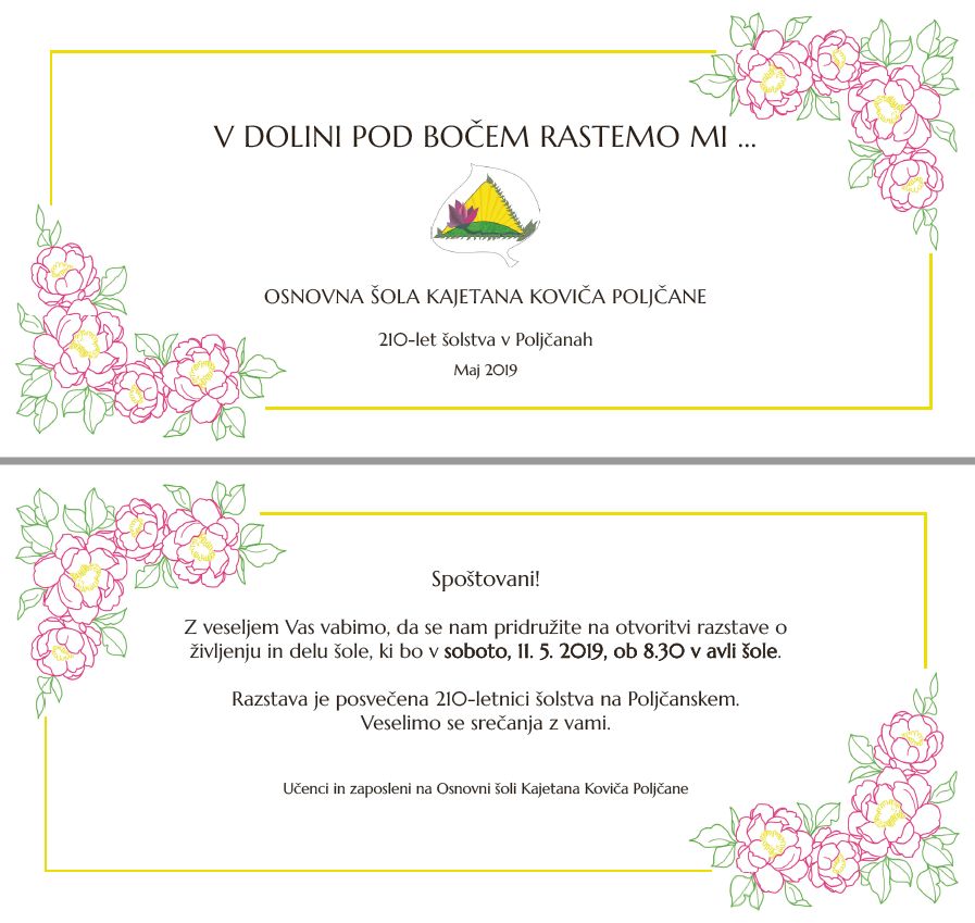 VABILO na otvoritev razstave ob 210-letnici šolstva