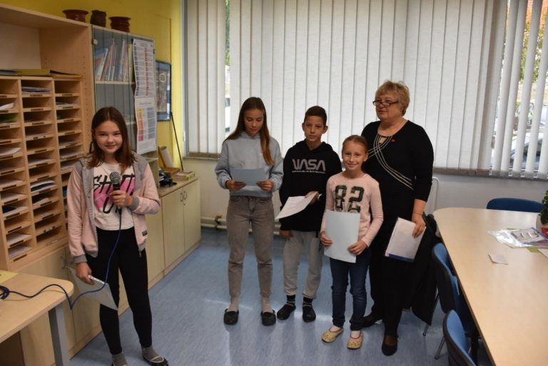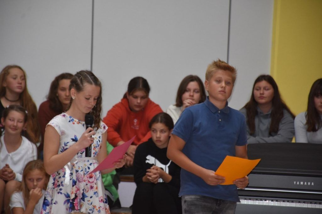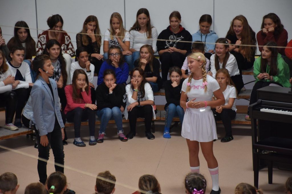 Nastopajoči in njihova mentorica v prvem delu s programom po ozvočenju