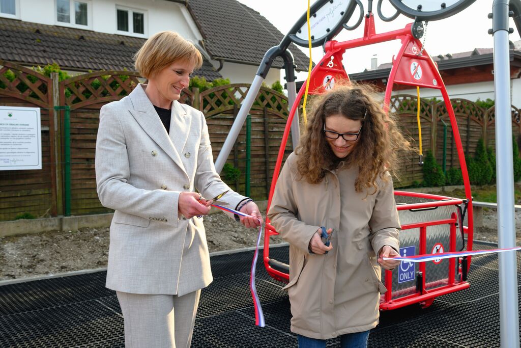 Simbolično otvoritev z rezom traku sta izvedli županja dr. Petra Vrhovnik in Tina Belec iz Zavoda Sonček Maribor. Med prvimi so jo preizkusili Luka, Lana in Teja. Njihovi iskreni nasmehi in navdušenje so povedali več kot tisoč besed ter potrdili, kako dragoceni so takšni projekti za kakovost življenja v našem kraju.