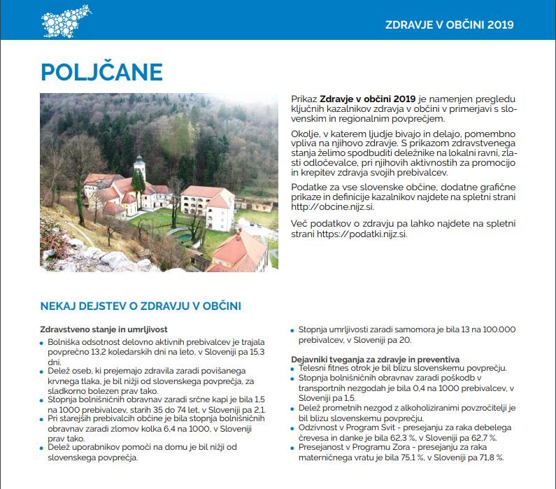 Nacionalni inštitut za javno zdravje je pripravil pregled ključnih kazalnikov zdravja v Občini Poljčane v primerjavi s slovenskim in regionalnim povprečjem.