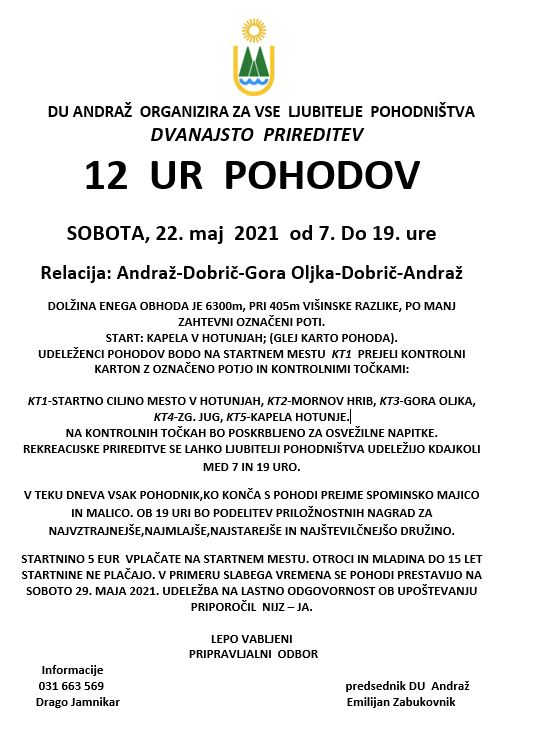 Kontaktni podatki organizatorja: Drago Jamnikar.