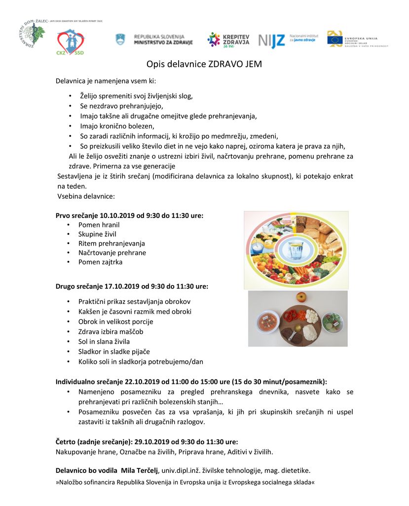 Zavod za krepitev zdravja ZD- Žalec je pripravil » DELAVNICE ZDRAVO JEM »