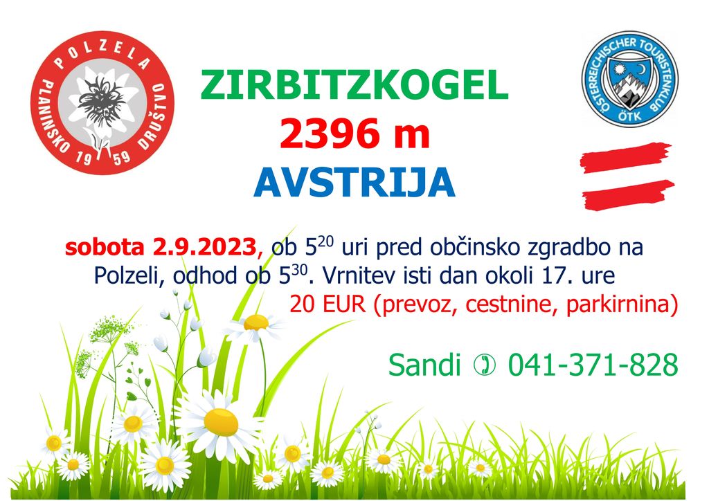 Planinsko društvo Polzela, vabi na pohod na ZIRBITZKOGEL, ki bo v soboto, 2.9.2023