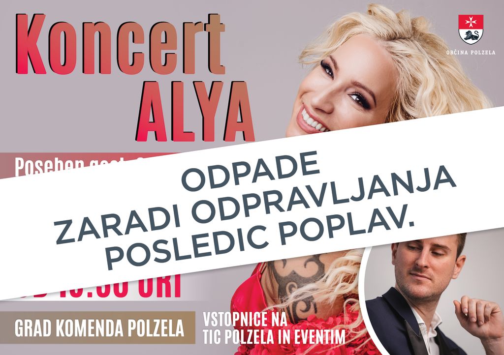 Obveščamo vas, da koncerta Alye zaradi odpravljanja posledic poplav ne bo.