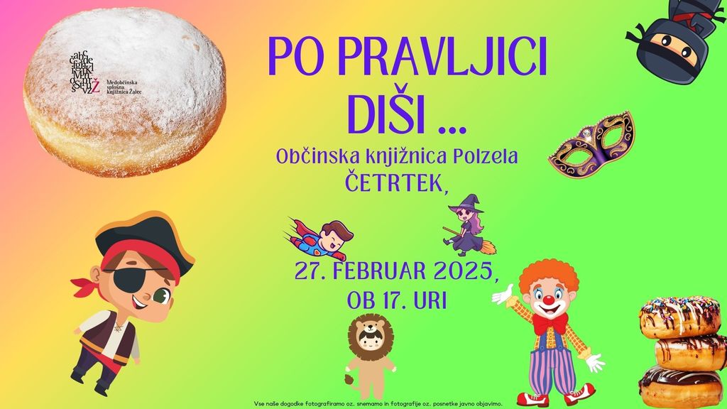 vabimo vas, da se pridružite pravljični pustni uri, polni čarovnije, zabave in pustnih mask, ki bo v četrtek, 27. februarja 2025, ob 17. uri v Občinski knjižnici Polzela.