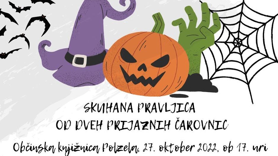 v četrtek, 27. oktobra 2022, vas ob 17. uri vabimo na Skuhano pravljico od dveh prijaznih čarovnic v Občinsko knjižnico Polzela.