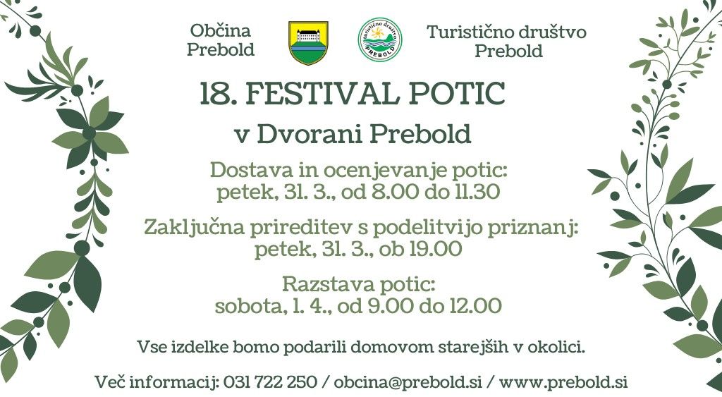Prijazno vabljeni na dostavo in ocenjevanje potic med 8.00 in 11.30 ter na podelitev priznanj ob 19.00 v Dvorano Prebold.