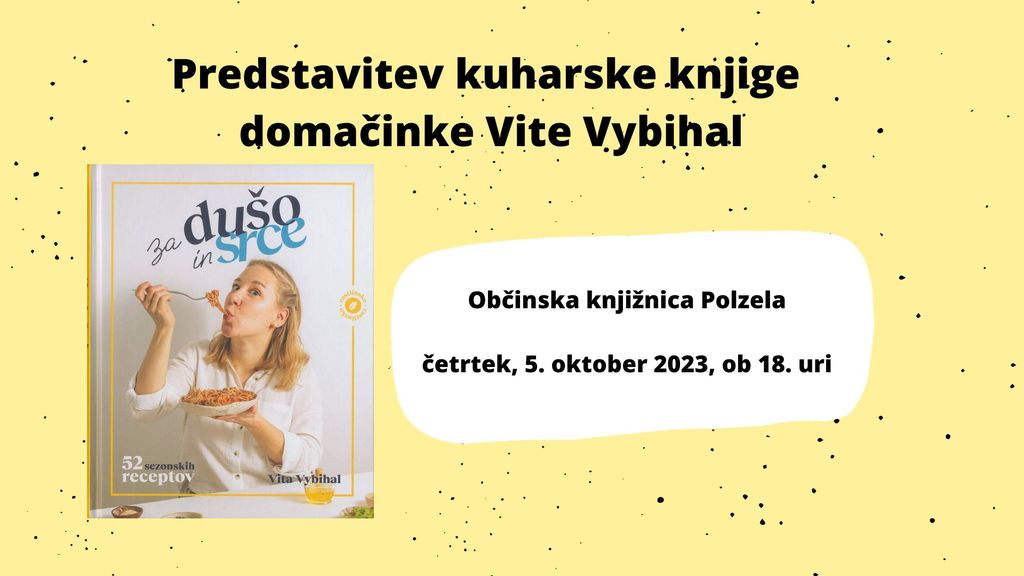 Občinska knjižnica Polzela vabi v četrtek, 5. oktobra 2023, ob 18. uri na predstavitev kuharske knjige domačinke Vite Vybihal Za dušo in srce.