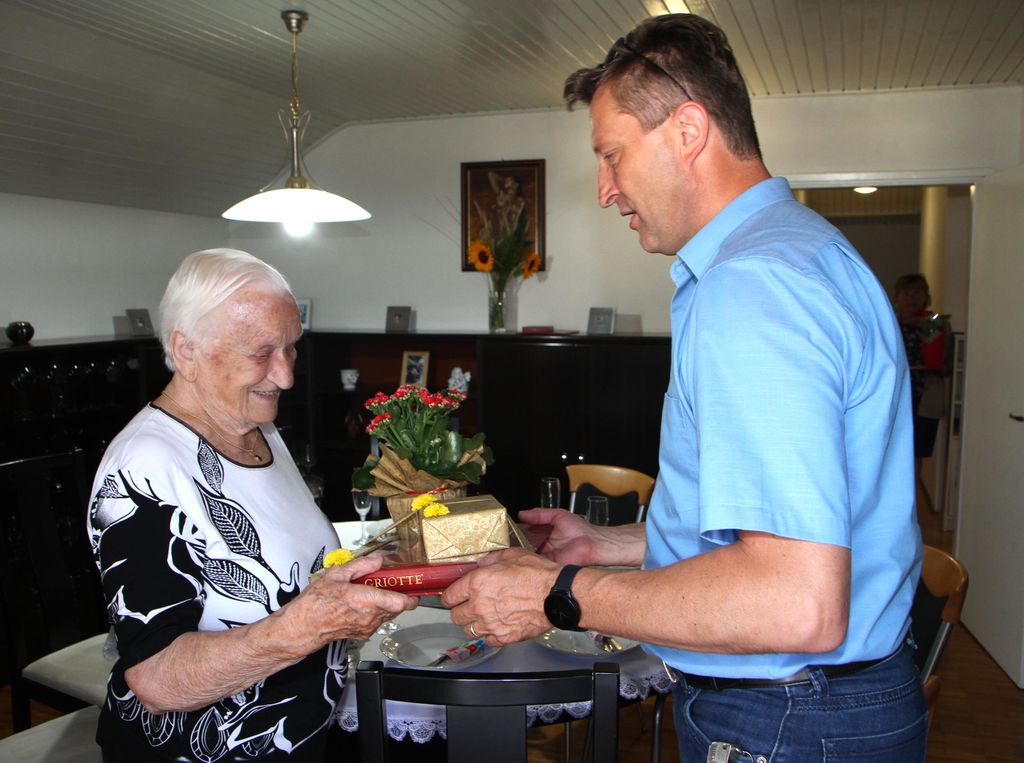 Angelo Košmrlj, ki živi na svojem domu na Polzeli skupaj s sinom Petrom in njegovo družino, so ob visokem jubileju, stotem rojstnem dnevu, dan pred praznikom dneva državnosti obiskali župan Občine Polzela Jože Kužnik, poslanec v DZ Ljubo Žnidar, predsednik ZB za vrednote NOB Žalec Marijan Turičnik, predsednik KBO Franci Žagar in član Jože Germ, predsednik DU Polzela Igor Pungartnik in predsednica KO RK Polzela Olga Hočevar. Angela, ki je praznovala stoti rojstni dan, jih je pričakala vsa vesela in zadovoljna, da so jo obiskali. Skupaj z njo so nazdravili ter se po čestitkah in prijetnem pogovoru o vsakdanjih stvareh in njenem jubileju poglobili v njene spomine na preteklost.