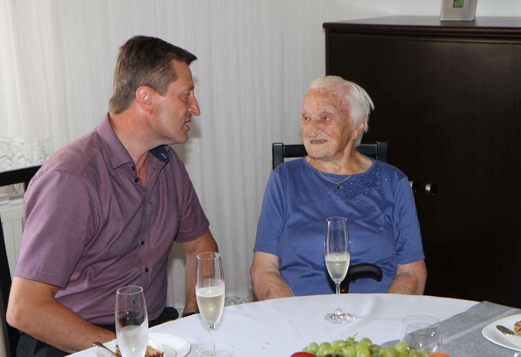 Angela jih je pričakala vsa vesela in zadovoljna, da so jo obiskali. Skupaj z njo so nazdravili ter se po čestitkah in prijetnem pogovoru o vsakdanjih stvareh in njenem jubileju poglobili v njene spomine na preteklost.