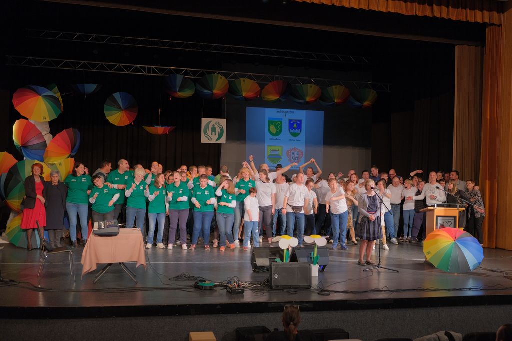 Naše praznovanje z naslovom »50 let sožitja – 50 let mavrice v dlaneh« je v dvorano Doma II. slovenskega tabora Žalec privabilo množico nastopajočih ter še več podpornikov in prijateljev. Z besedo, petjem, igranjem in plesom so se predstavili naši fantje in dekleta iz skupine Čokoladke, VDC Muc in VDC Maksi. Program so popestrili prijatelji iz II. OŠ Žalec, Društva Sožitje Obsotelje–Kozjansko, Sožitja Celje, folklorna skupina Grifon iz Šempetra, ansambel Veseli Žalčani, Vaški godci iz Andraža nad Polzelo, Godba veteranov UTŽO in Mažoretna skupina Liboje. Prireditev je povezovala Jolanda Železnik. Z obiskom nas je počastila množica predstavnikov lokalne skupnosti, dogodka so se udeležili tudi vodje zavodov, društev oziroma skupin.
