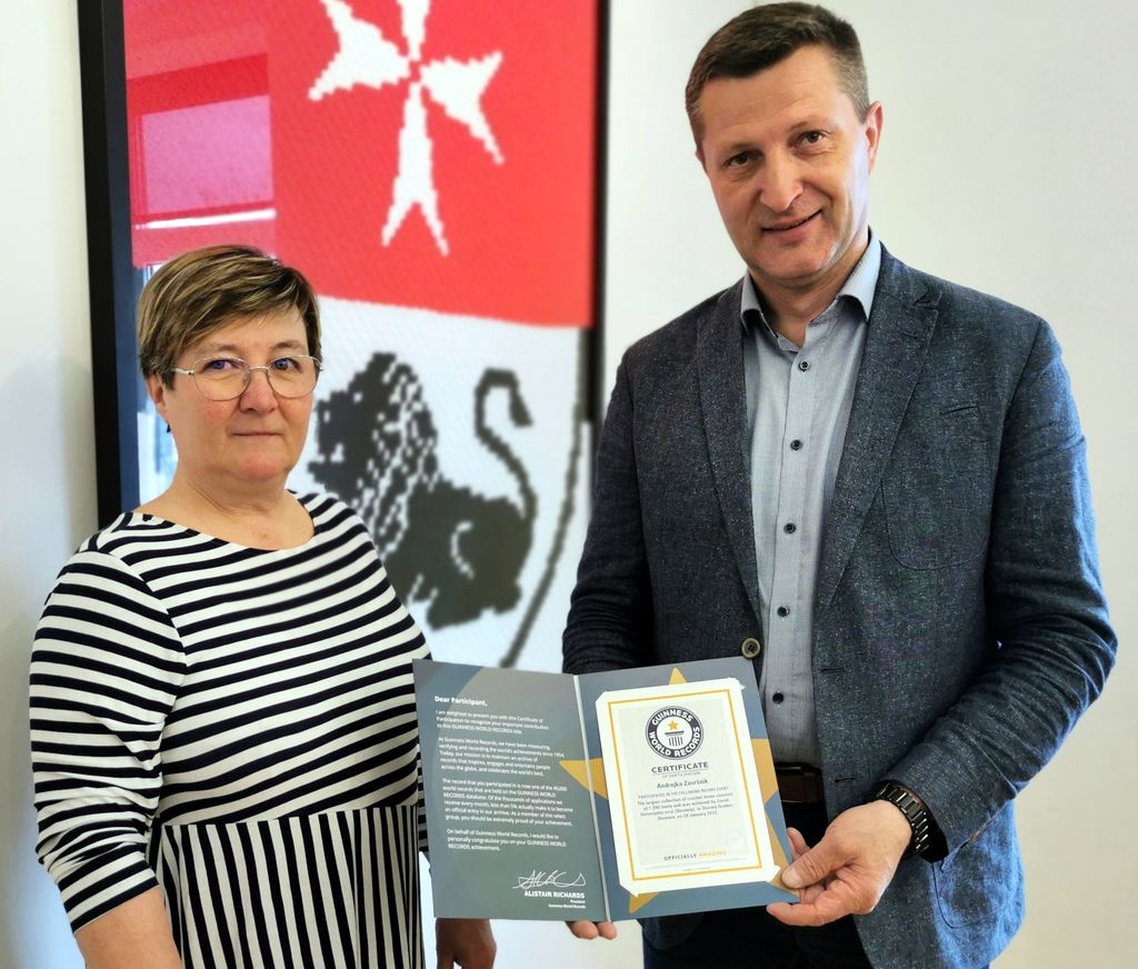 Od 15. septembra do konca leta 2021 so namreč izdelali 1200 različnih kvačkanih izdelkov, kar je največ na svetu. Med njimi so bili tudi grbi vseh slovenskih občin. Občina Polzela je svojega odkupila, župan pa se je Andrejki Završnik zahvalil za trud, saj je v izdelavo vložila kar 150 ur kvačkanja.