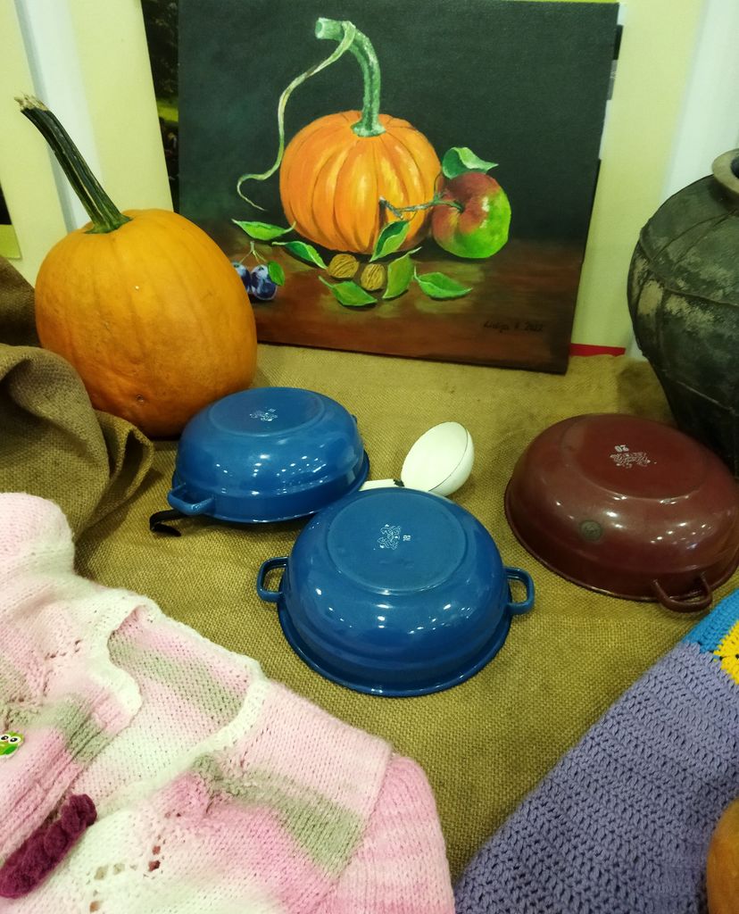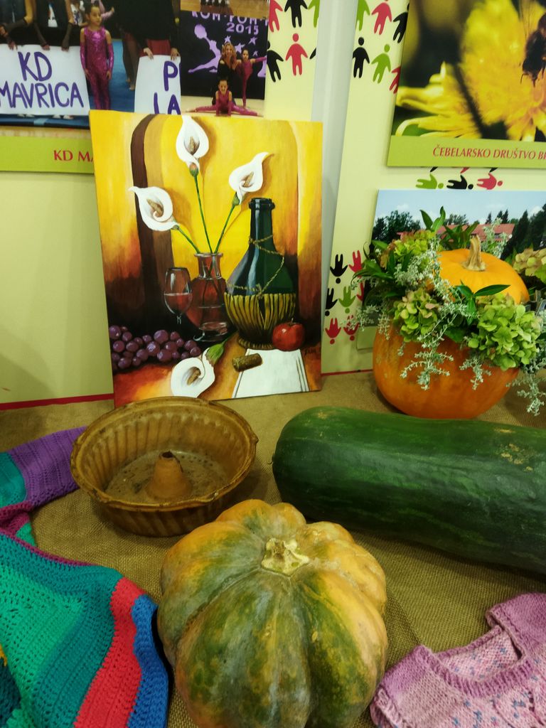 K razstavi buč so domiselno in privlačno dodali različne ročno izdelane, pletene in vezene izdelke ter staro posodo, kar je tvorilo zanimiv, atraktiven ogled in pogled v preteklost opravil kmečkih žena. Na slikah so bile poleg buč upodobljene jesenske krajine, kmečka opravila in tihožitja z jesenskimi pridelki.