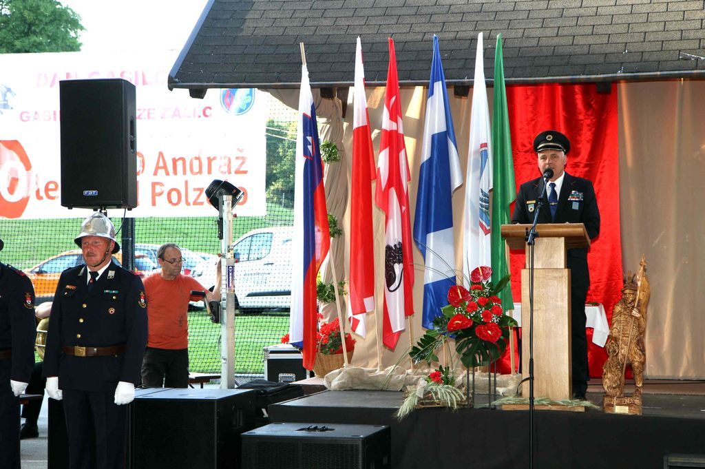 Prireditev se je začela s slavnostnim prihodom osrednjega gosta, generalnega direktorja Uprave Republike Slovenije za zaščito in reševanje Darka Buta, v spremstvu predsednika GZ Žalec Edvarda Kuglerja in predsednika PGD Andraž nad Polzelo Davida Zabukovnika. Zatem sta na prizorišče prikorakali častna četa in četa praporov 32 gasilskih društev GZ Žalec, prapora GZ Žalec, praporov mladine in veteranov GZ Žalec ter gostujočih gasilskih društev pod vodstvom podpoveljnikov GZ Žalec Janka Lupšeta in Dušana Zabukovnika. Po predaji poročila najvišjemu gasilskemu predstavniku, ki ga je predal namestnik poveljnika GZ Žalec David Krk in za zaigrano slovensko himno godbenikov iz Liboj so sledili pozdrav predsednika GZ Žalec Edvarda Kuglerja, nagovor župana Občine Polzela Jožeta Kužnika in slavnostni govor osrednjega gosta, generalnega direktorja Uprave ZR RS Darka Buta. Ta je v nagovoru gasilcem izrazil hvaležnost za poslanstvo, ki ga opravljajo, poudaril je dobro sodelovanje gasilske zveze z upravo in podal nekaj informacij o aktivnostih na področju gasilstva.