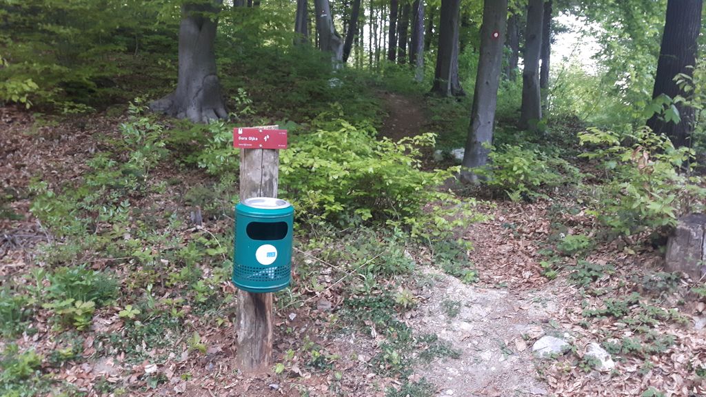 Ob dnevu Zemlje, 22. aprila, smo sosedje ob novem parkirišču pod Goro Oljko v zemljo vkopali kostanjev steber. Nanj smo privijačili koš za smeti, ki je bil do zdaj privijačen na bližnji bor.