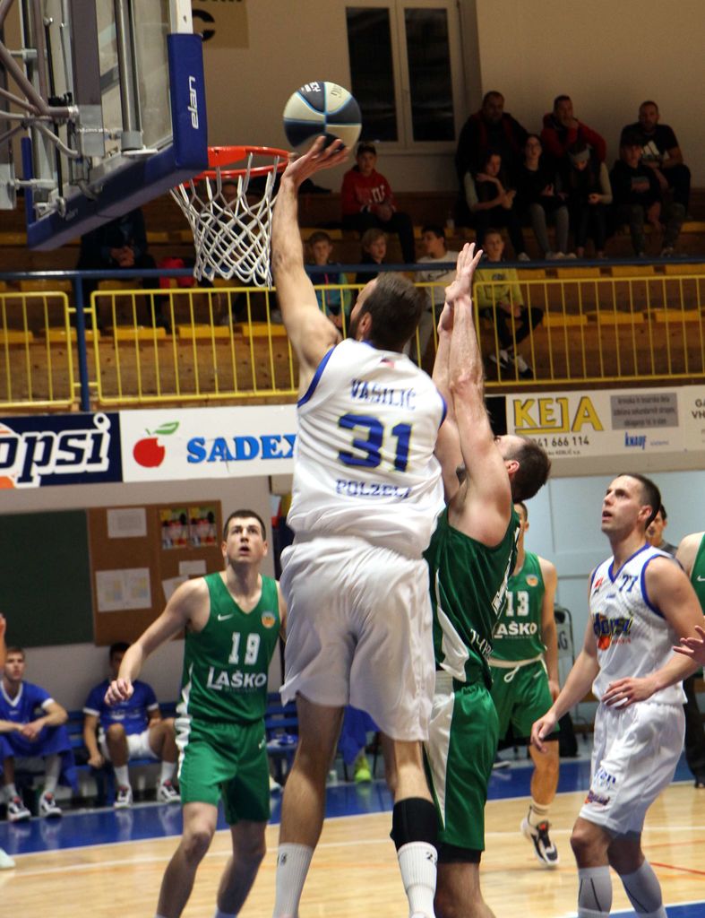 Hopsi so v petem nastopu drugič zmagali v Ligi Nova KBM in se s tekmo manj na osmem mestu priključili sedmi Iliriji in šestim Termam Olimia. Gostje iz Laškega so sicer odločno začeli dvoboj in si po prvih desetih minutah priigrali prednost 12 točk. Toda že do polčasa so Polzelani ujeli priključek in se kljub slabemu metu za tri točke približali na 32 : 33. Tudi v tretjo četrtino so nato gostitelji krenili bolje in pred 300 gledalci višali prednost. Ta je po 30 minutah znašala +8, tudi v zadnji četrtini pa se varovanci Matjaža Čuješa niso ustavili in so zadržali prednost osmih točk.