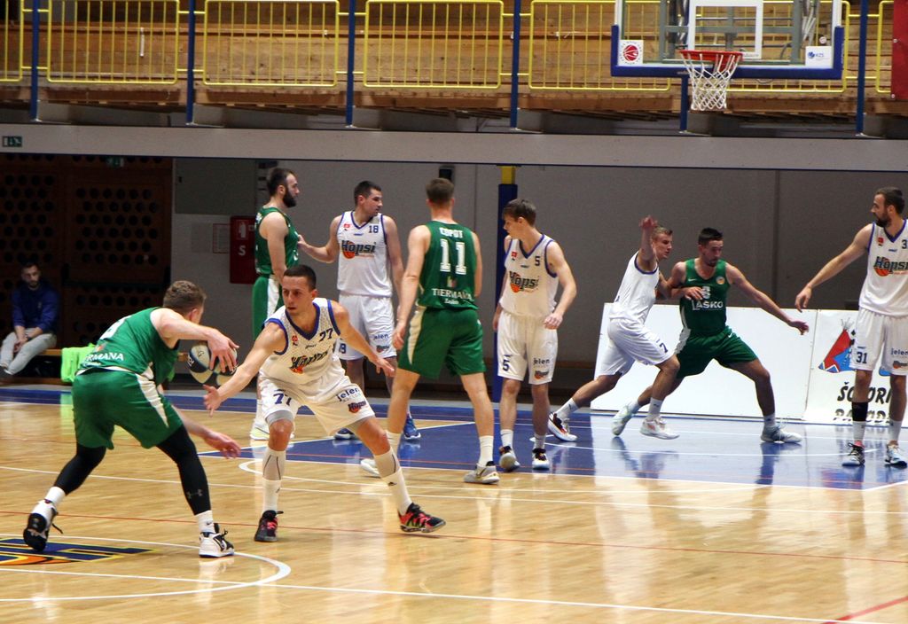 Gostje iz Laškega so odlično začeli in prvo četrtino dobili s 7 : 19, a na koncu so vendarle morali priznati premoč domačim košarkarjem. Hopse je znova do zmage popeljal najboljši strelec Lige Nova KBM Jure Pelko, ki je dosegel 25 točk, z 19 mu je sledil Milojko Vasilić (12 skokov). Pri Laščanih je bil najbolj razpoložen Jan Copot s 17 točkami.