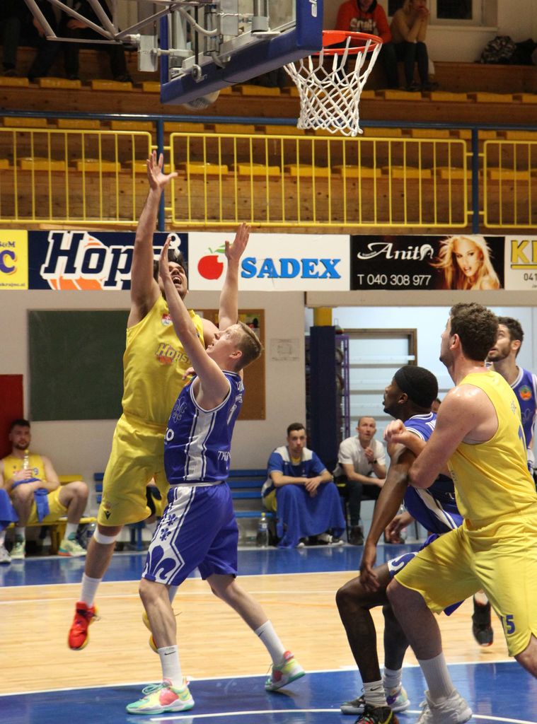 Dvoboj so bolje začeli varovanci Aleša Pipana, ki so Hopsom v prvi četrtini nasuli 31 točk in vodili za 12. Toda domačini so se že v drugi četrtini oddolžili in na odmor odšli z minimalno prednostjo 53 : 52. V drugem polčasu je bilo dogajanje na parketu sprva bolj izenačeno, moštvi pa sta se večkrat izmenjali v vodstvu. V zadnji četrtini so najprej Hopsi z delnim izidom 8 : 0 povedli za sedem, štiri minute pred koncem pa prišli do dvomestne prednosti 86 : 75. Razliko so varovanci Vladimirja Rizmana nato vmes še nekoliko povišali, dvoboj pa sklenili z 11 točkami prednosti.