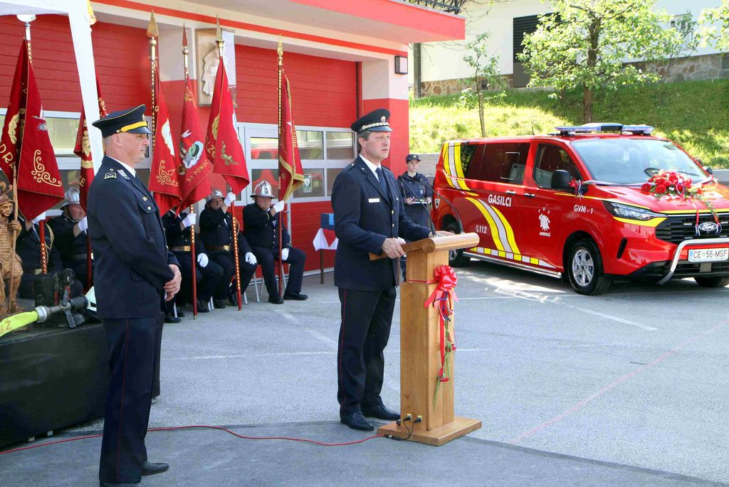 Župan Jože Kužnik je v svojem govoru poudaril, da gasilska dejavnost ni le dejavnost, nujna za varnejše življenje, ampak tudi dejavnost, ki ohranja vrednote, na katere se v sodobnem času vse prevečkrat pozablja: tovarištvo, solidarnost, sodelovanje in spoštovanje. Sledila je predaja ključa novega gasilskega vozila za prevoz moštva GVM-1 poveljniku domačega društva Davidu Krku, ta pa ga je predal vozniku in skrbniku vozila Roku Meklavu.