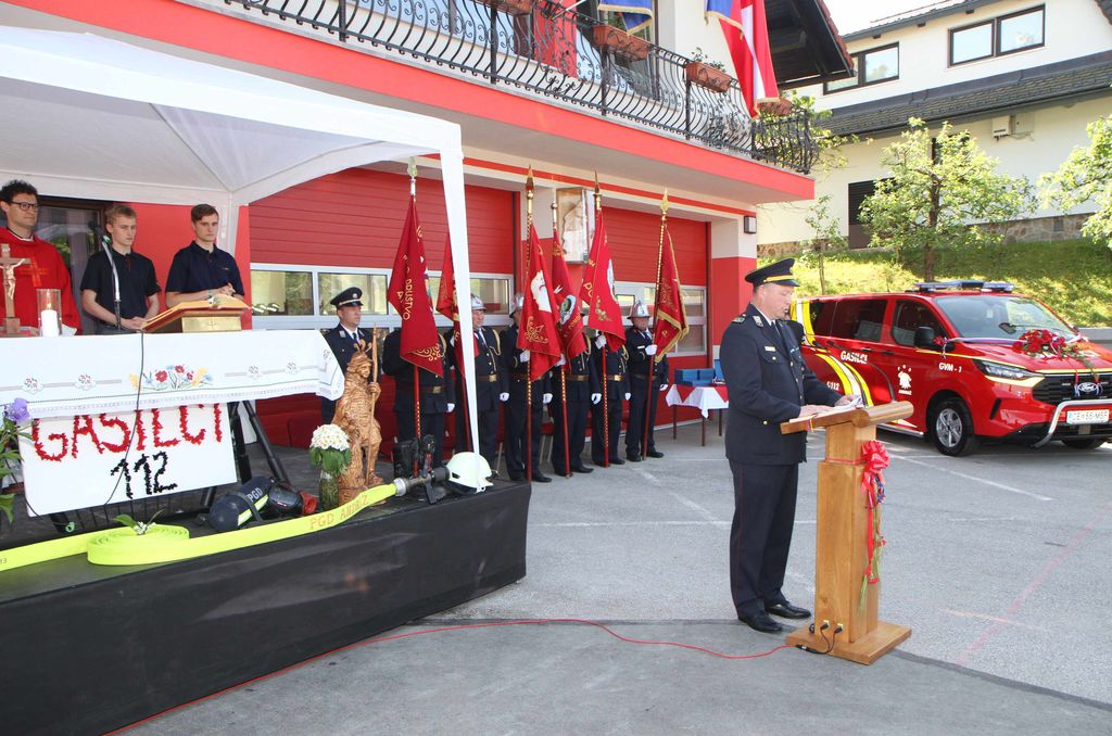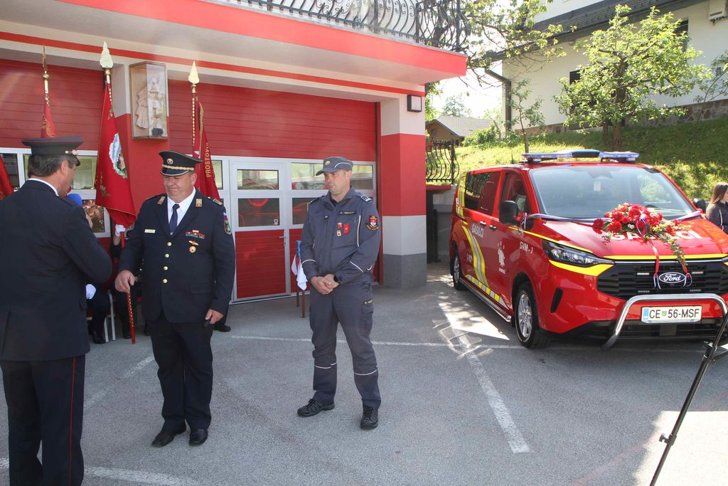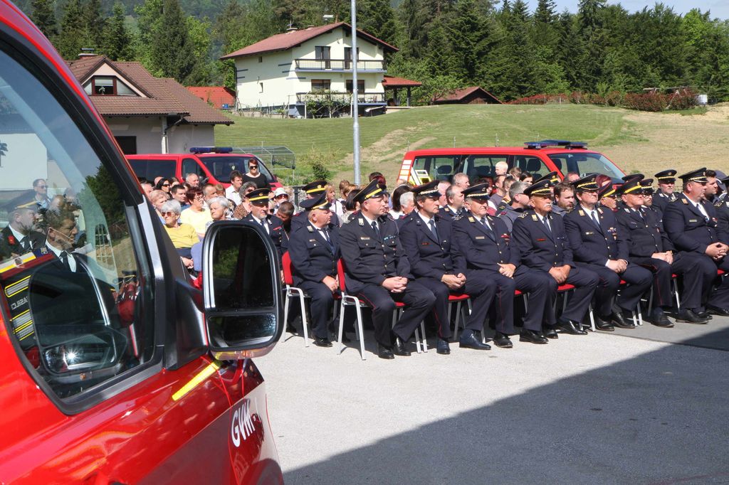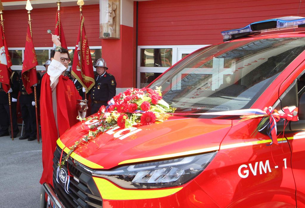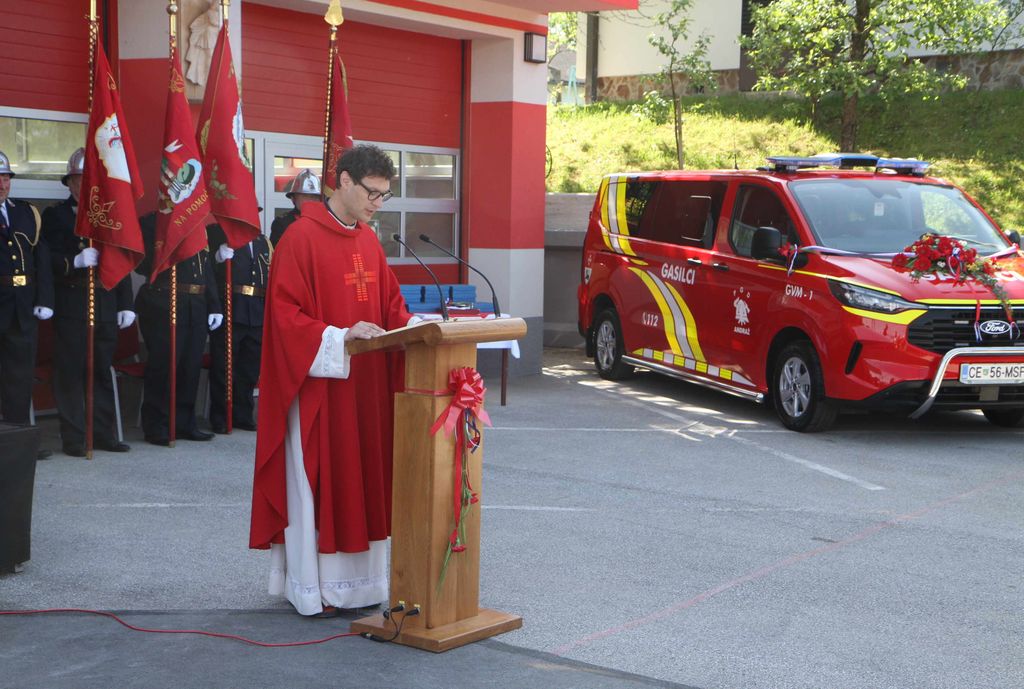 blagoslovu novega gasilskega vozila, ki ga je opravil župnik Urban Lesjak, je