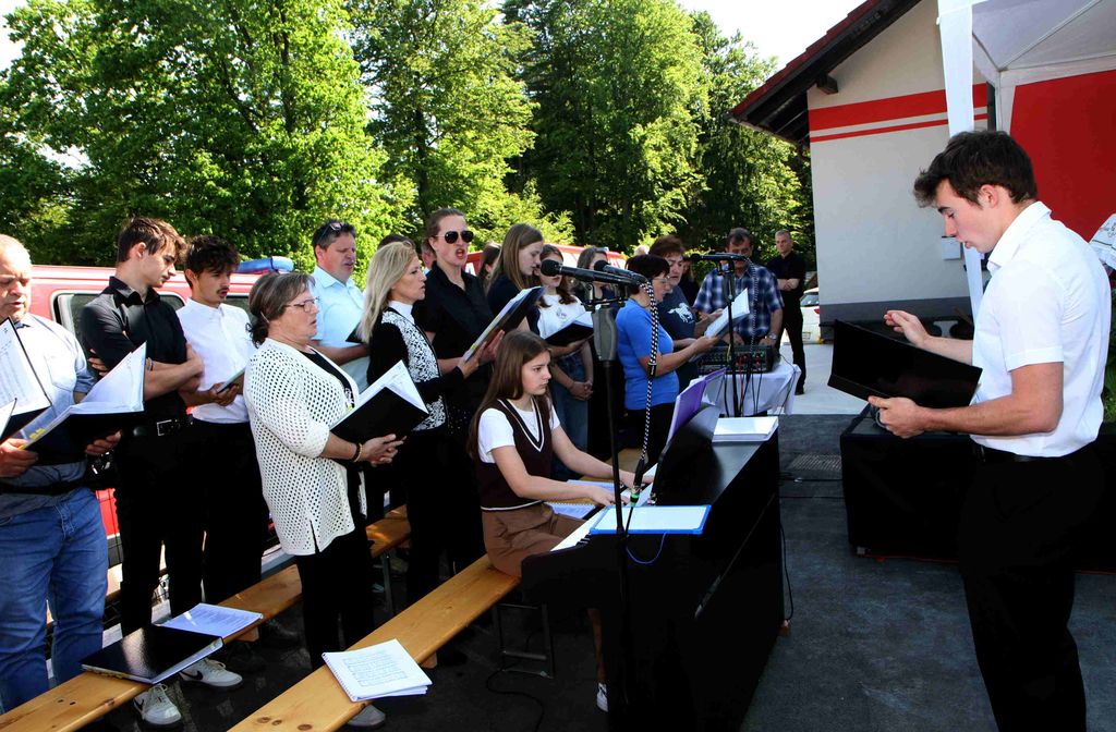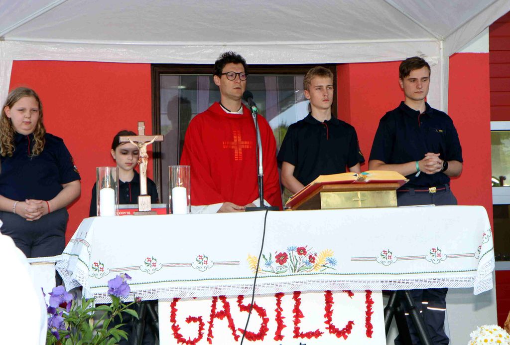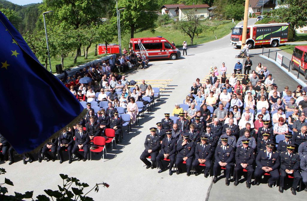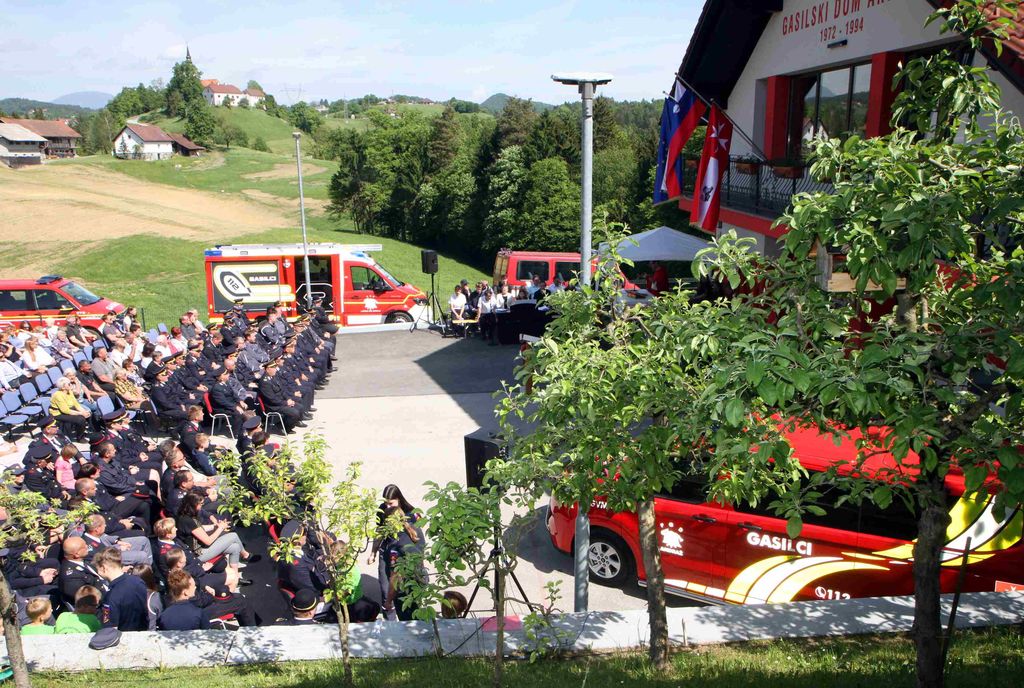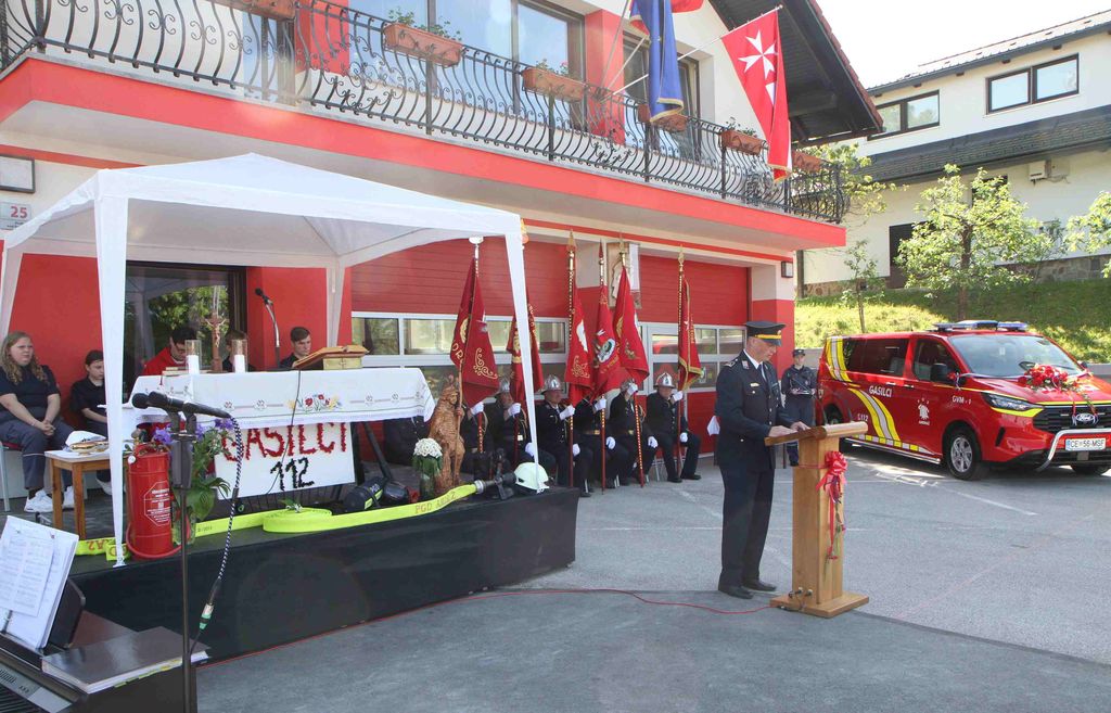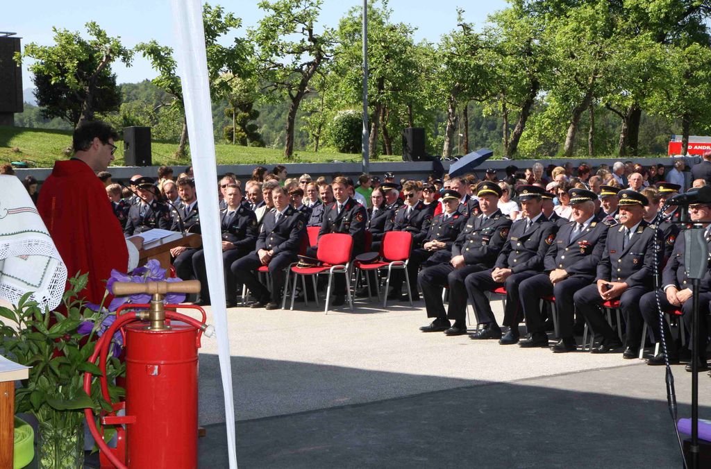 blagoslovu novega gasilskega vozila, ki ga je opravil župnik Urban Lesjak, je