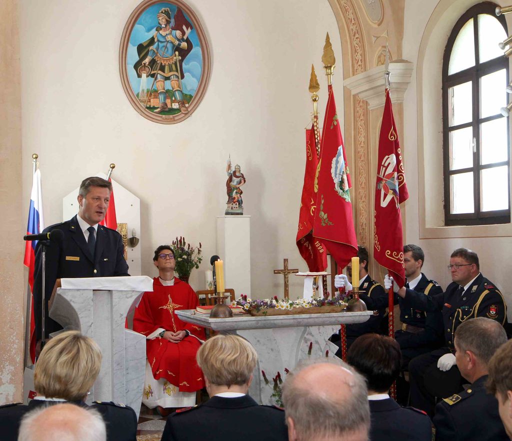 Zbrane je ob koncu maše pozdravil župan Občine Polzela Jože Kužnik in v svojem govoru poudaril, da gasilska dejavnost ni le dejavnost, nujna za varnejše življenje, ampak tudi dejavnost, ki ohranja vrednote, na katere se v sodobnem času vse prevečkrat pozablja: tovarištvo, solidarnost, sodelovanje in spoštovanje. Vsem zbranim gasilcem se je zahvalil za njihovo požrtvovalnost, drugim navzočim pa, ker podpirajo in cenijo njihovo delo. S priložnostnim darilom se je zahvalil tudi likovnemu umetniku Petru Bizjaku, ki je novo oltarno sliko sv. Florjana dobrodušno podaril.