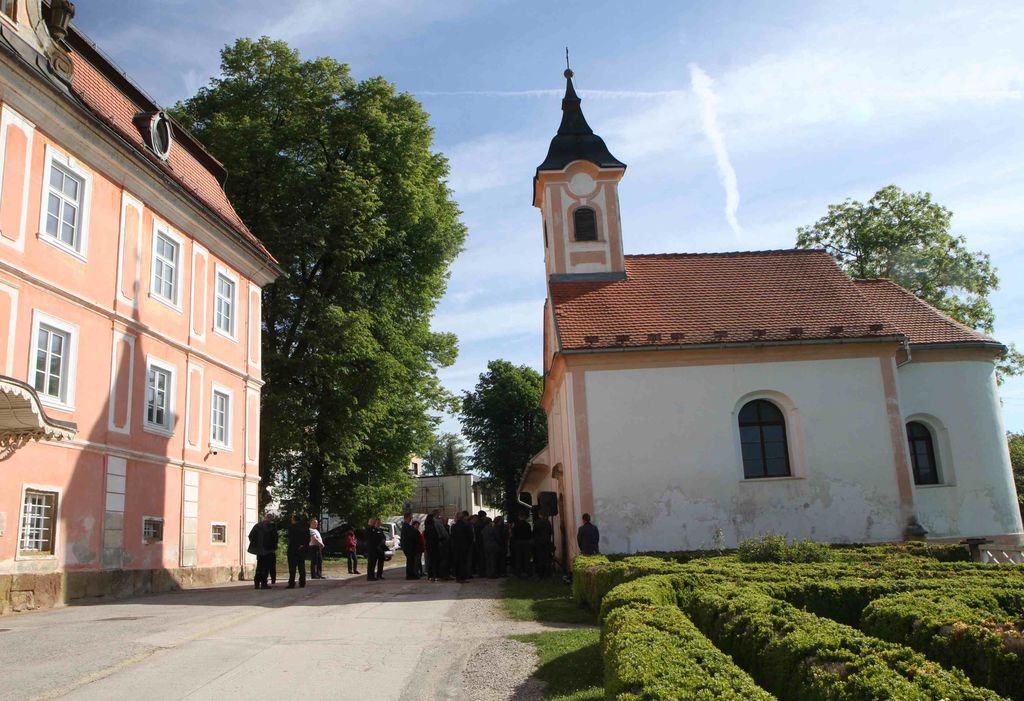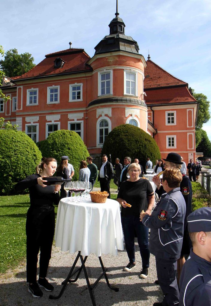 Po maši so družabno srečanje nadaljevali v parku graščine Šenek.