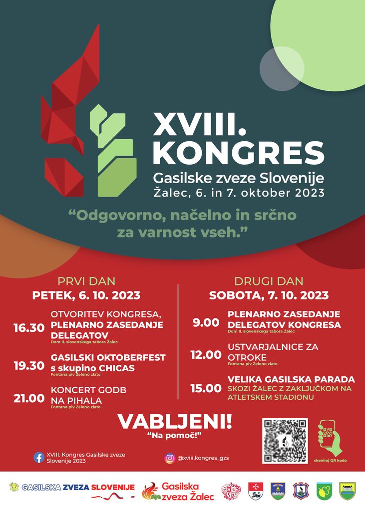 Vsakih pet let se predstavniki slovenskih gasilcev srečajo na kongresu Gasilske zveze Slovenije. Letos je kongres že 18. po vrsti. Gasilska zveza Slovenije je za gostiteljico dogodka izbrala Gasilsko zvezo Žalec.
