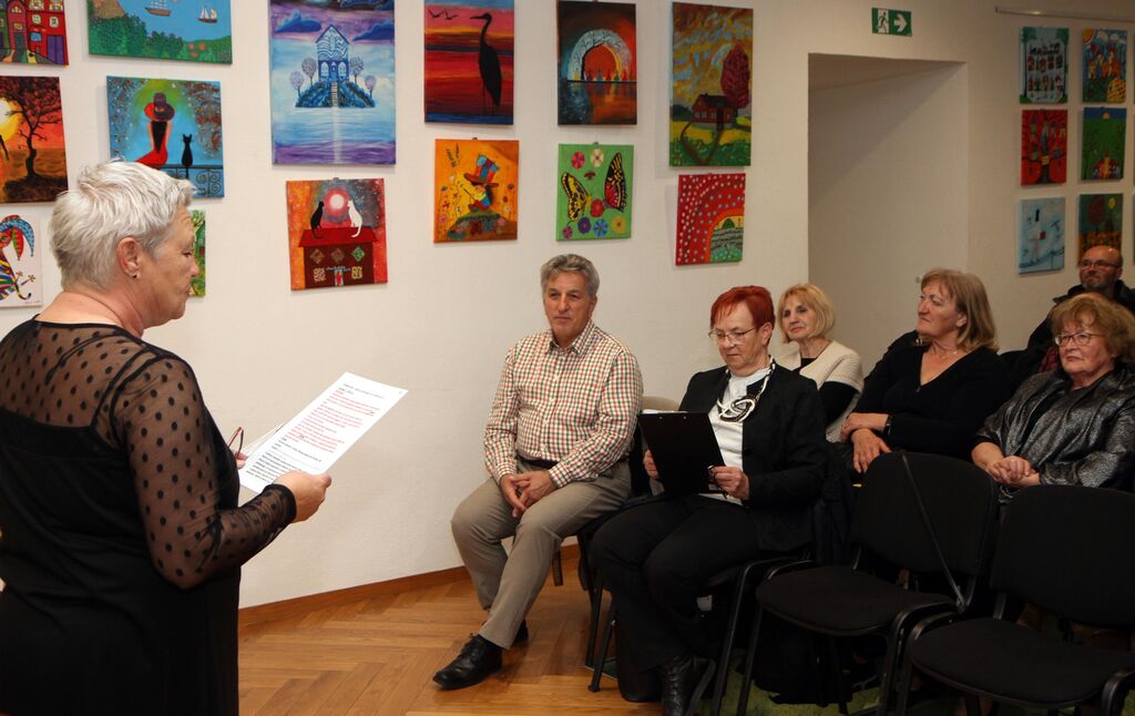 Razstava ima naslov "Iz srca na platno". O njej in o razstavljavcu sta na odprtju govorili Nevenka Anzelc Gostenčnik in Sonja Jezernik, na citrah pa je nekaj skladb zaigrala znana citrarka Neli Kos.