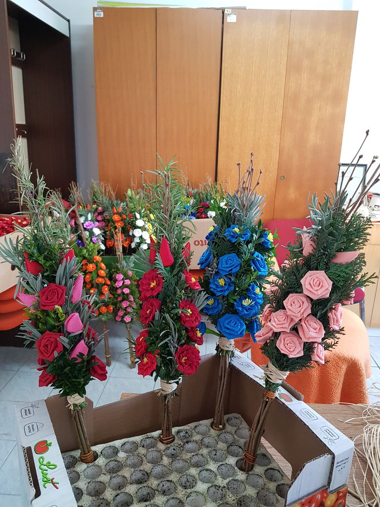 V Župnijski Karitas Polzela so tudi letos prizadevne roke izdelovale praznične butare za cvetno nedeljo. Nekatere so bile okrašene zgolj s suhim cvetjem iz barvastega kreppapirja, nekatere tudi s svežim zelenjem.