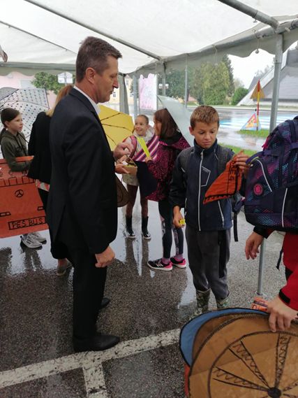 Na Občini Polzela, skupaj s strokovnimi delavci OŠ Polzela smo pričeli z izvedbo prvega dne ETM 2022. Naših osnovnošolcev in njihovih učiteljev ter staršev, obilni dež, ki je po dolgem obdobju suše, se odločil nas obiskati ravno v tednu evropske mobilnosti, ni pregnal. Otroci so kljub dežju, prišli v šolo s »pešbusem«.