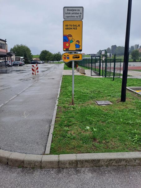 Postavili smo tudi tablo ukrep »Poljubi in odpelji«, na parkirišču za šolo, in sicer kot določena postaja za samostojno aktivno pot do šole.