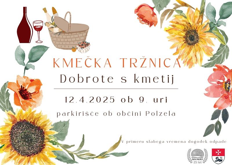 Vabljeni na kmečko tržnico – Dobrote s kmetij, ki bo v soboto, 12. aprila 2025, ob 9. uri na parkirišču pri Občini Polzela.